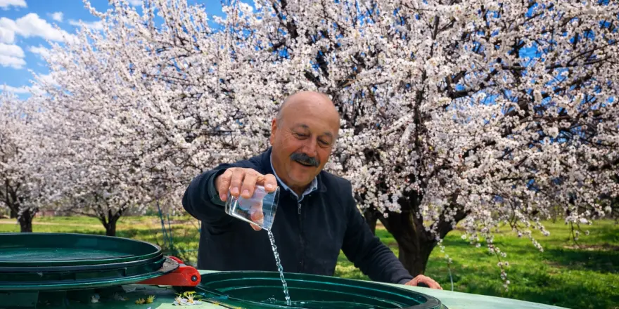 Malatya’nın Akçadağ ilçesinde kayısı üreticisi Turan Kocaman, yeni sezon öncesi dikkat çeken bir uygulamaya imza attı. Kocaman, bir süre önce kutsal topraklardan getirdiği zemzem suyunu, kayısı bahçesinde ilaçlama yaptığı tankere ekleyerek bereketli ve felaketsiz bir sezon temennisinde bulundu.
